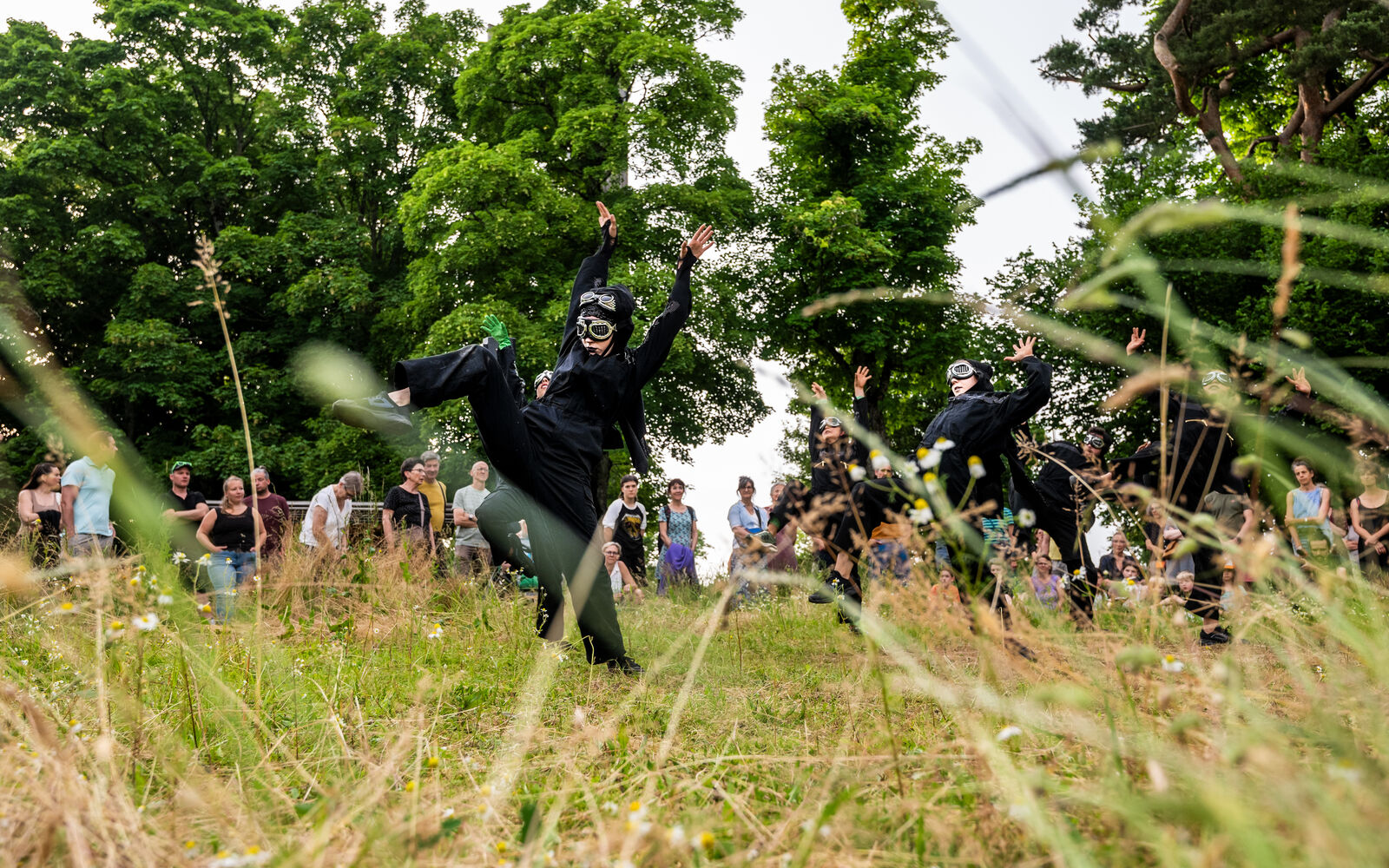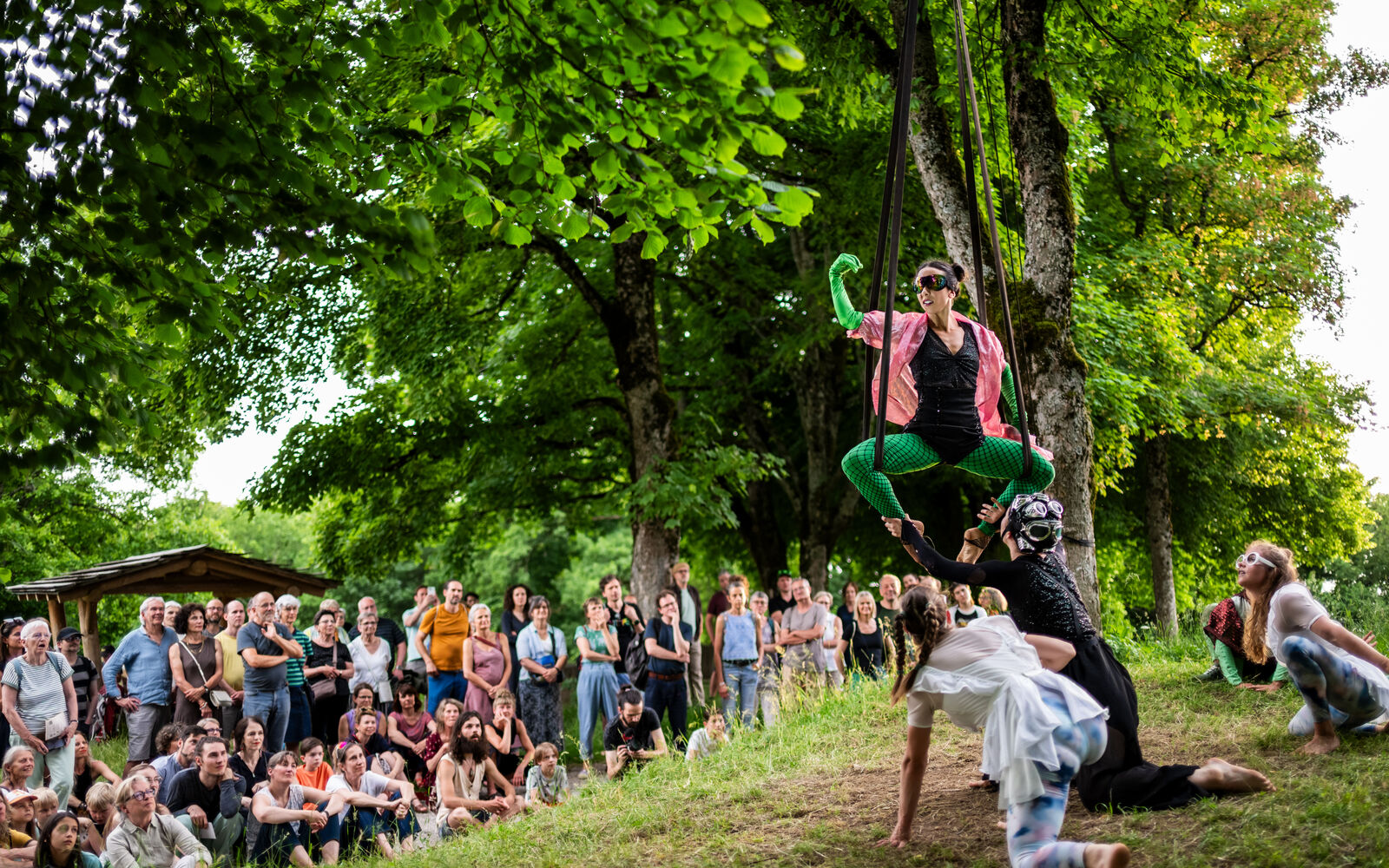 Gli insetti sono onnipresenti, anche se il loro microcosmo resta per lo più invisibile. Con «INSEKTEN oder der Tanz zwischen Himmel & Erde» (INSETTI ovvero la danza tra cielo e terra), la Compagnia di danza ed arti aeree öff öff rende omaggio a queste piccole creature spesso minacciate. Le artiste si muovono come farfalle, mantide religiose o coleotteri, con originalità e leggerezza tra le altezze vertiginose che si ergono sopra gli alberi. Per un breve istante, l’arte sembra sfidare la gravità. Questo spettacolo di danza virtuosistica invita a riflettere sulla nostra responsabilità verso la natura e sul suo fragile equilibrio.